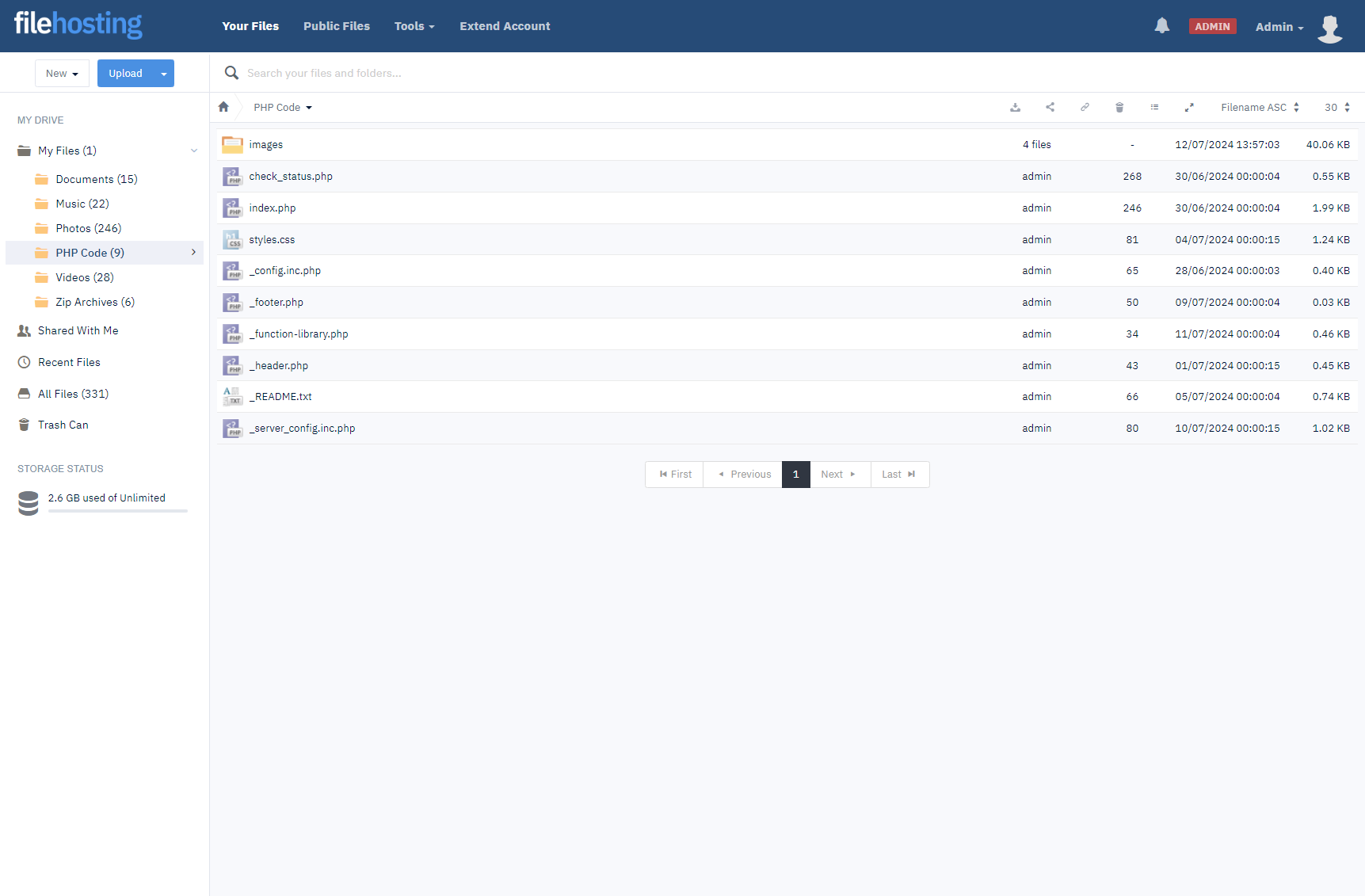 The file manager is fast, flexible and feature rich. Each user which signs up for an account will have their own file manager. We've built this entirely in-house, so additional features can be added as needed.