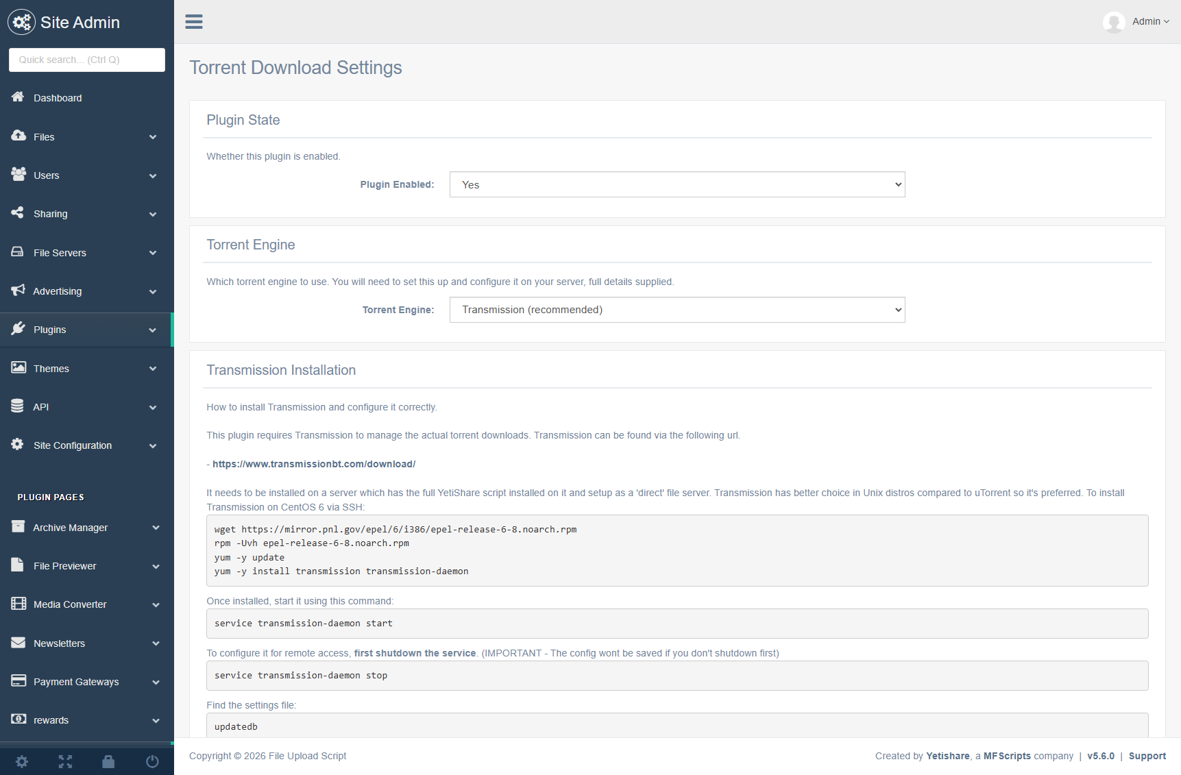 Administrative tools and configuration for the Torrent Download plugin.