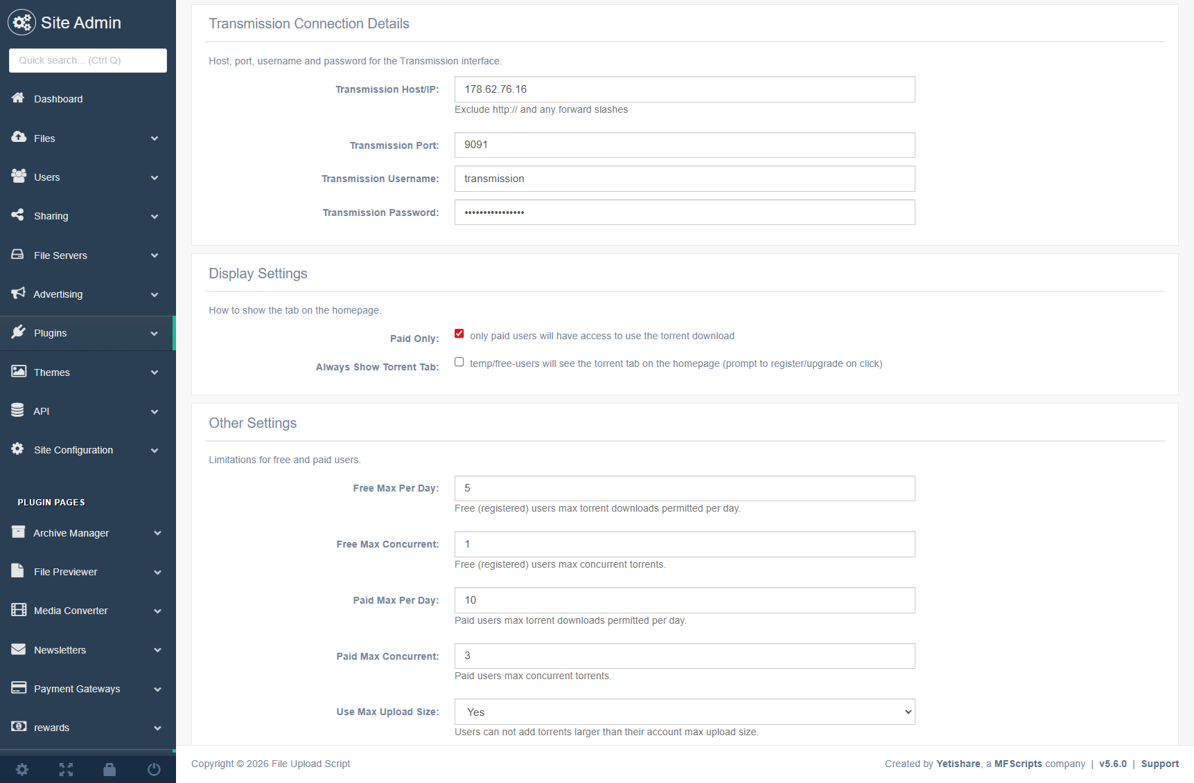 Choose whether only paid users can use torrents or allow both free and paid users.